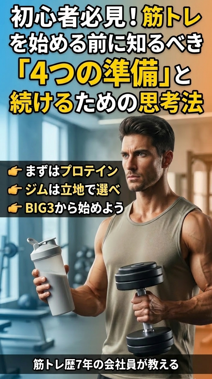 筋トレを始めたい一歩手前の方に向けて、筋トレ歴7年の筆者が実体験から学んだ、失敗しない準備と継続のコツを最短ルートで解説します。