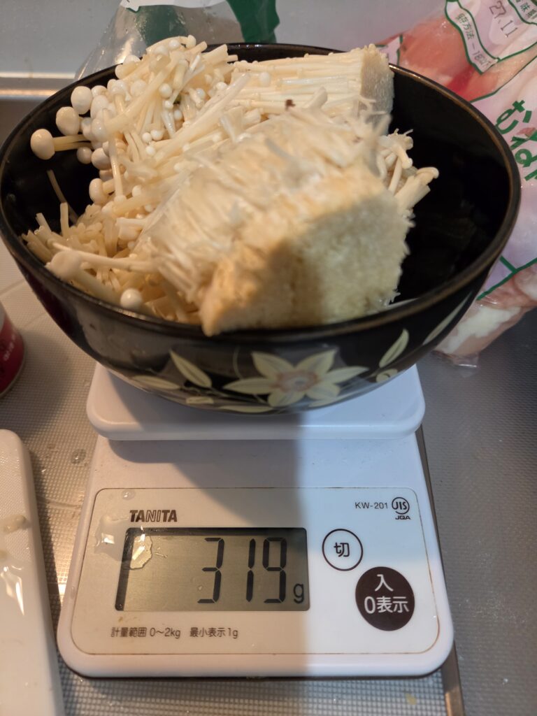 減量中は食感が欲しいので大きめに切ってます。(特にエノキ)