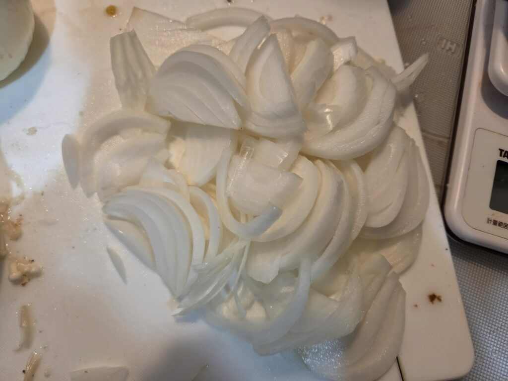 大体2~3玉。新玉ねぎのほうが水分も甘みもあってGood。旬ですしね。