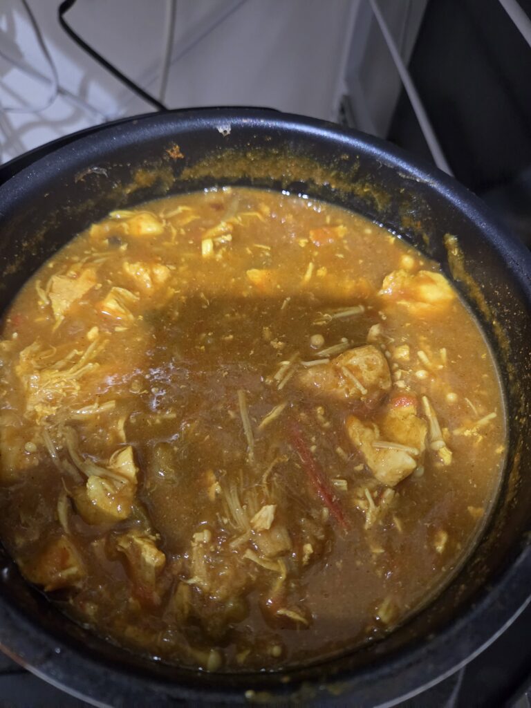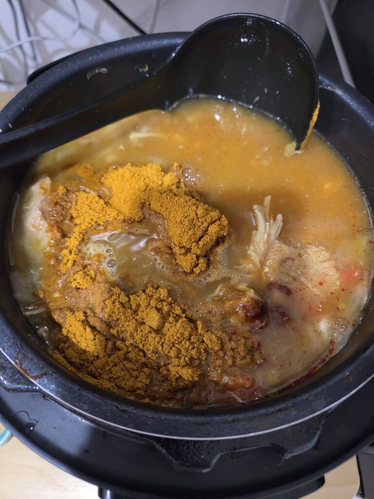 ここにカレー粉を投入して、10分かき混ぜながら煮込めば完成!
